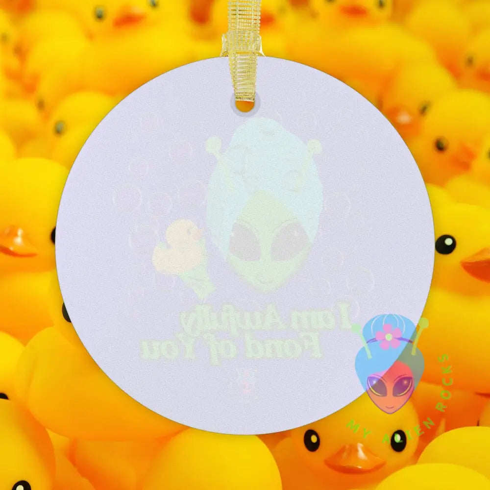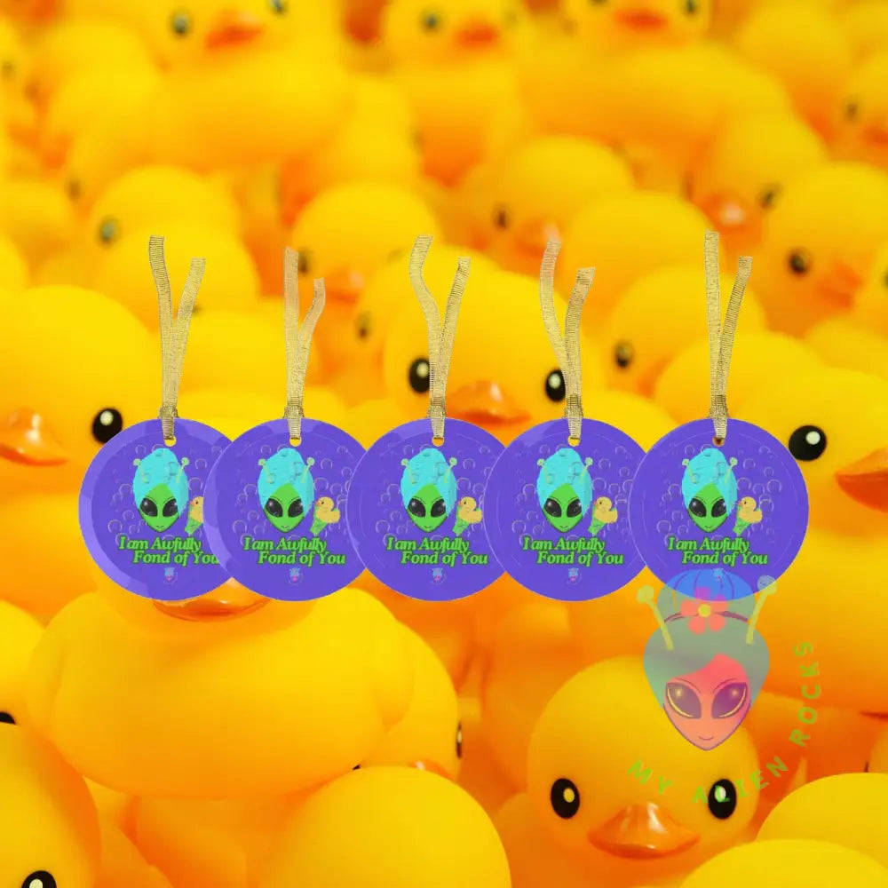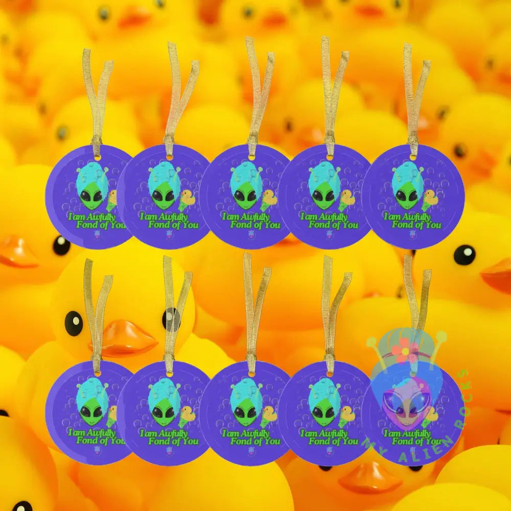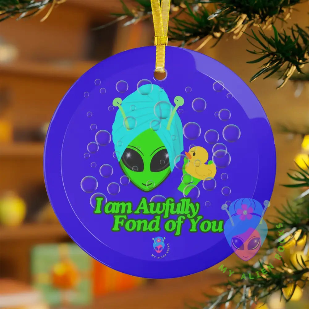 Bubble Bath Alien with Rubber Ducky - I Am Awfully Fond of You - Electric Violet - Glass Ornaments