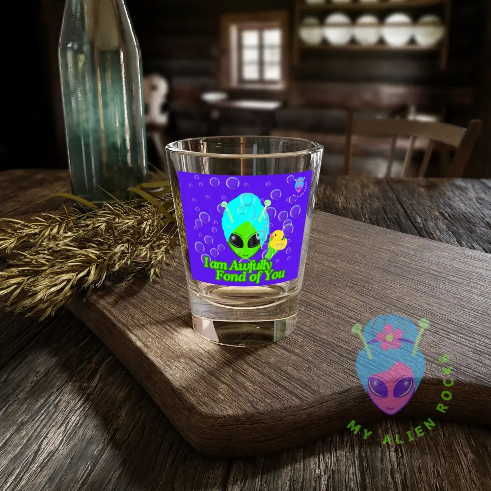 Bubble Bath Alien with Rubber Ducky - I Am Awfully Fond of You - Electric Violet - Shot Glass, 1.5oz