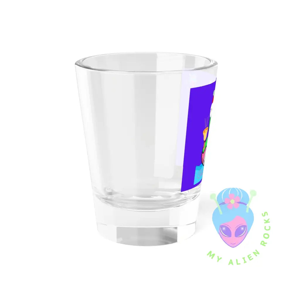 Have you ever taken a shot with an extraterrestrial before? Well, now you can with this epic My Alien Rocks shot glass! Now, it's not galactic news that shot glasses will ultimately save the human race...but it is galactic news that this particular shot glass comes in our signature electric violet color with a rendering of our out-of-season-seasons-greetings alien, Tinsel! (Meet Tinsel — and the rest of our rockin' family — on social media @myalienrocks)!