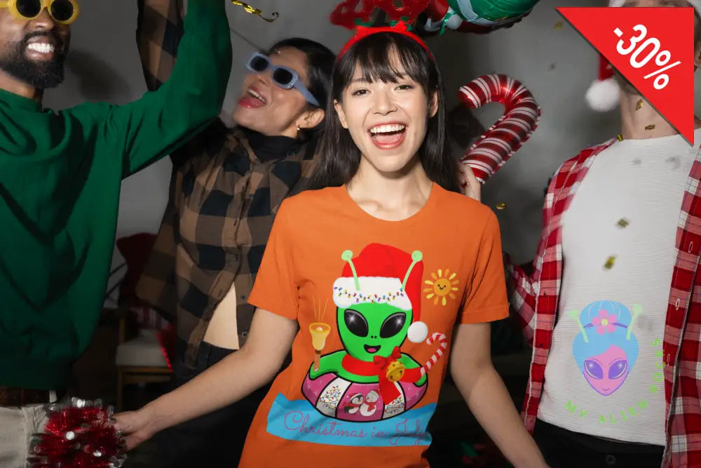 Extraordinary Earthlings — this one's for you! Now, it's not galactic news that t-shirts have saved the human race on multiple occasions...but it is galactic news that this particular super soft unisex(y) heavy cotton tee comes in multiple color options and features a rendering of our out-of-season-seasons-greetings alien, Tinsel! (Meet Tinsel — and the rest of our rockin' family — on social media @myalienrocks)!