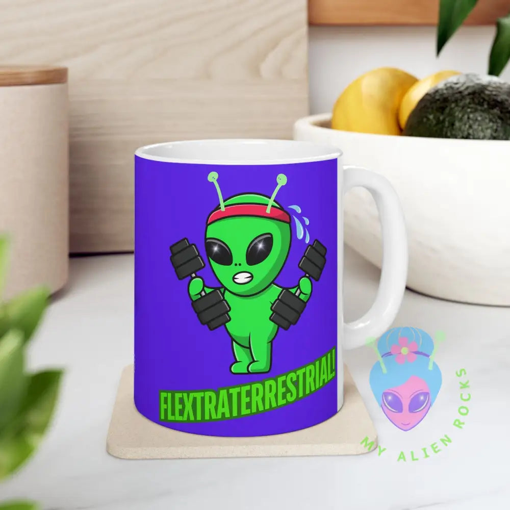 Flextraterrestrial Alien - Exercising Alien - Electric Violet - White - Ceramic Mug, (11oz, 15oz)
