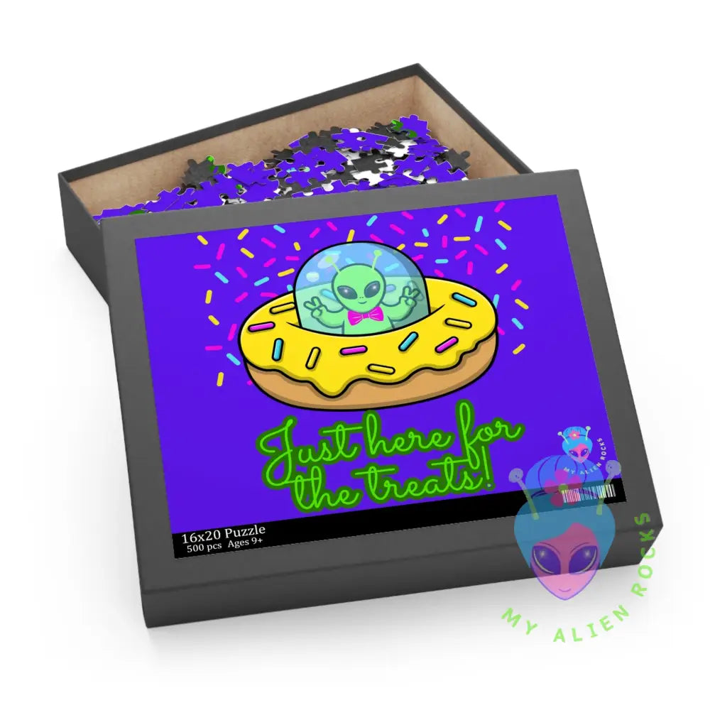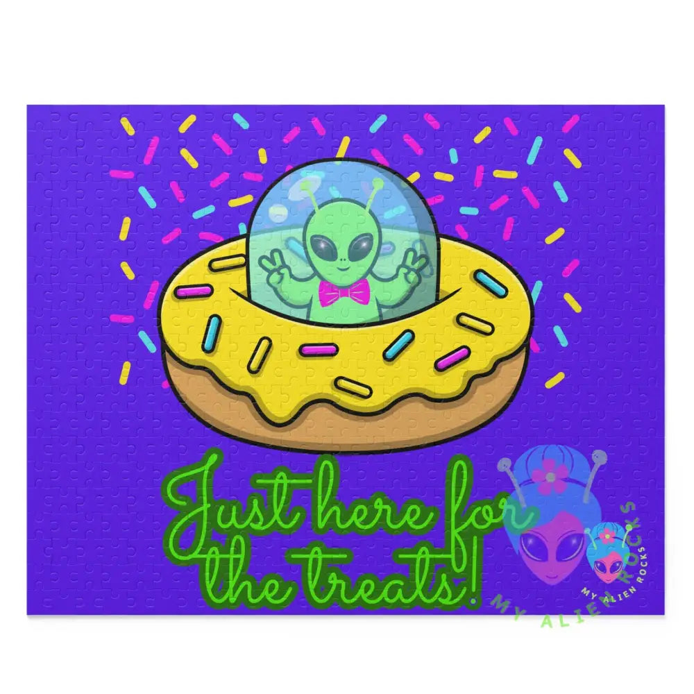Just Here for the Treats Alien - Donut UFO with Sprinkles - Electric Violet - 500-Piece Puzzle