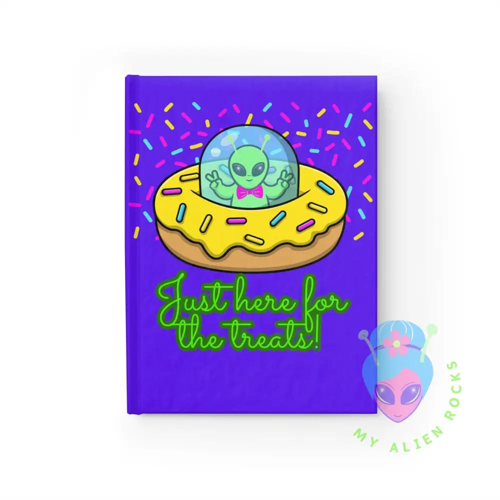 Just Here for the Treats Alien - Donut UFO with Sprinkles - Electric Violet - Hardcover Journal