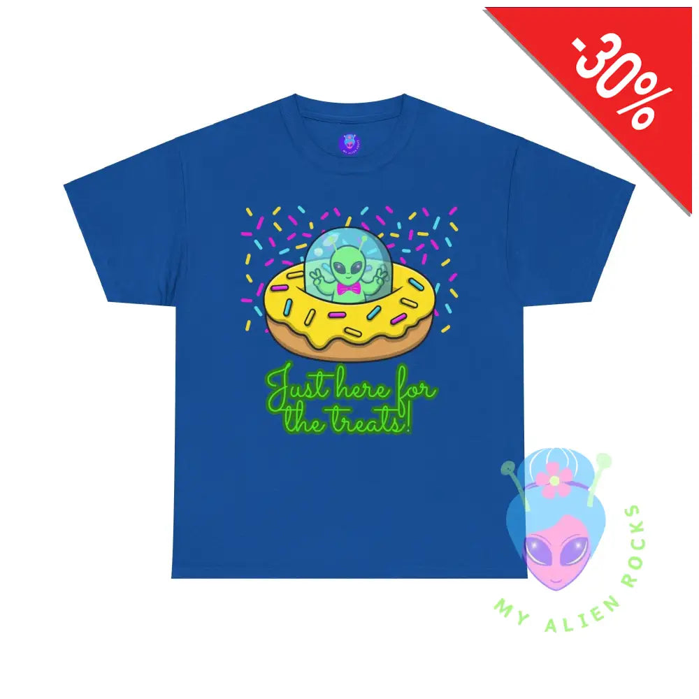Just Here For the Treats Alien - Donut UFO with Sprinkles - Unisex Heavy Cotton Tee