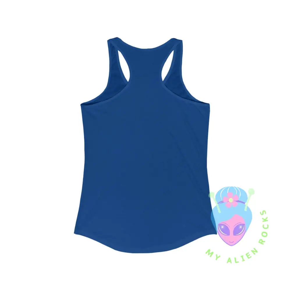 Our alien-forward women's ideal racerback tanks are all the hot-weather rage...universe-wide! Now, it's not galactic news that tank tops are to summer what laser beams are to kittens...but it is galactic news that this My Alien Rocks racerback tank comes in a variety of eye-poppin' colors and features a rendering of our please-don't-go-over-the-fill-line-enforcin'-specimen-collectin' alien, Mildred! (Meet Mildred — and the rest of our rockin' family — on social media @myalienrocks)!
