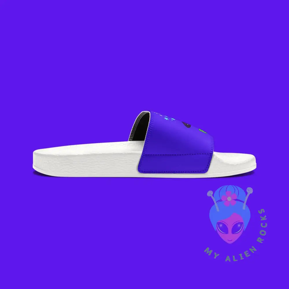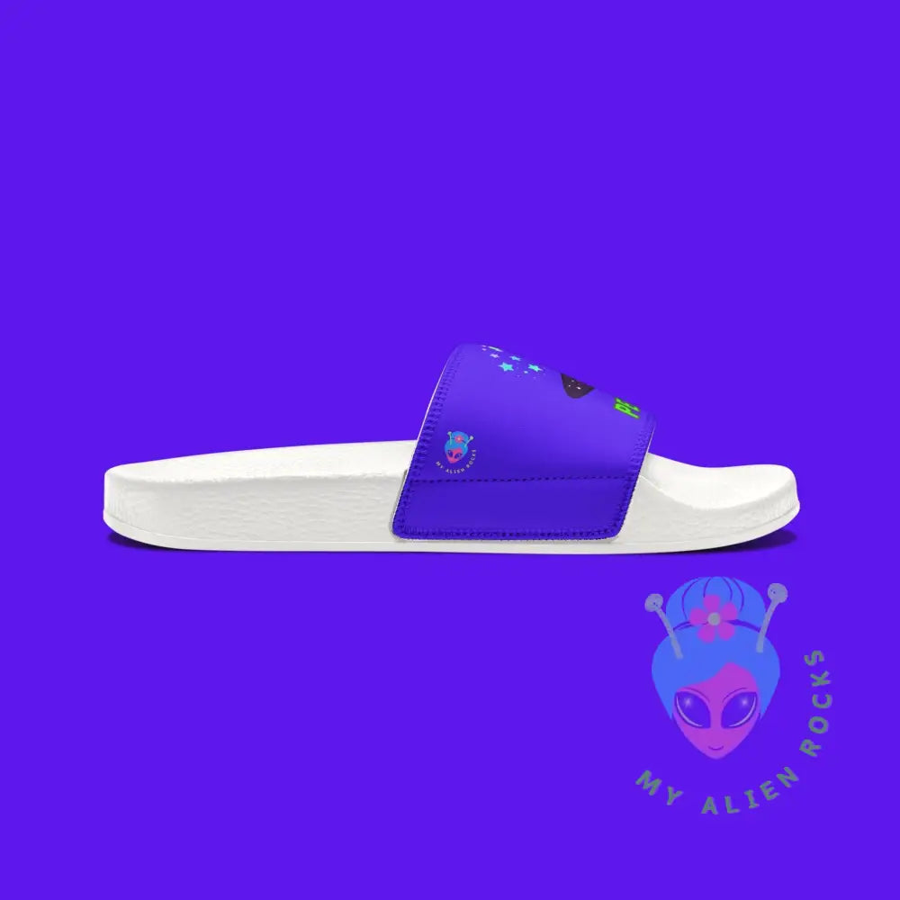 There's nothing cuter than a sandal wearing alien...except maybe a My Alien Rocks sandal wearing Earthling! Rock the summer heat in stellar-style with your favorite My Alien Rocks character(s) on these sassy-slide-sandals for women. Made with PU outsoles and an edge-to-edge artistic strap that will never peel, crack, or fade, these sandals feature high-quality ergonomic soles that help cradle and comfort the foot (you're welcome, Earthlings)! Now, it's not galactic news that sandals are the billboard of the feet...but it is galactic news that this particular foot billboard comes in our signature electric violet color with a rendering of our today-years-old-blushing-baby-dipper alien, Bonita! (Meet Bonita — and the rest of our rockin' family — on social media @myalienrocks)!
