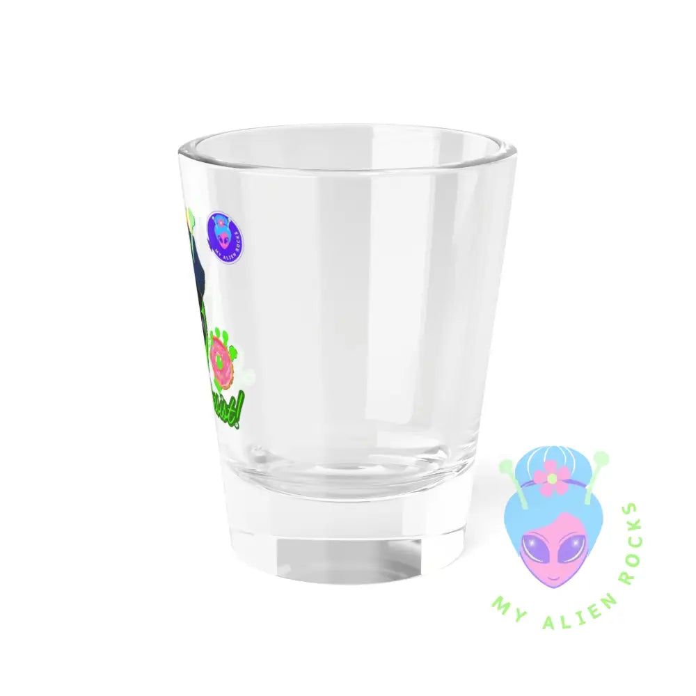 Have you ever taken a shot with an extraterrestrial before? Well, now you can with this epic My Alien Rocks shot glass! Now, it's not galactic news that shot glasses will ultimately save the human race...but it is galactic news that this particular shot glass comes with a rendering of our donut-even-think-about-forgettin'-the-extra-sprinkles-enforcin' alien, Douglas! (Meet Douglas — and the rest of our rockin' family — on social media @myalienrocks)!