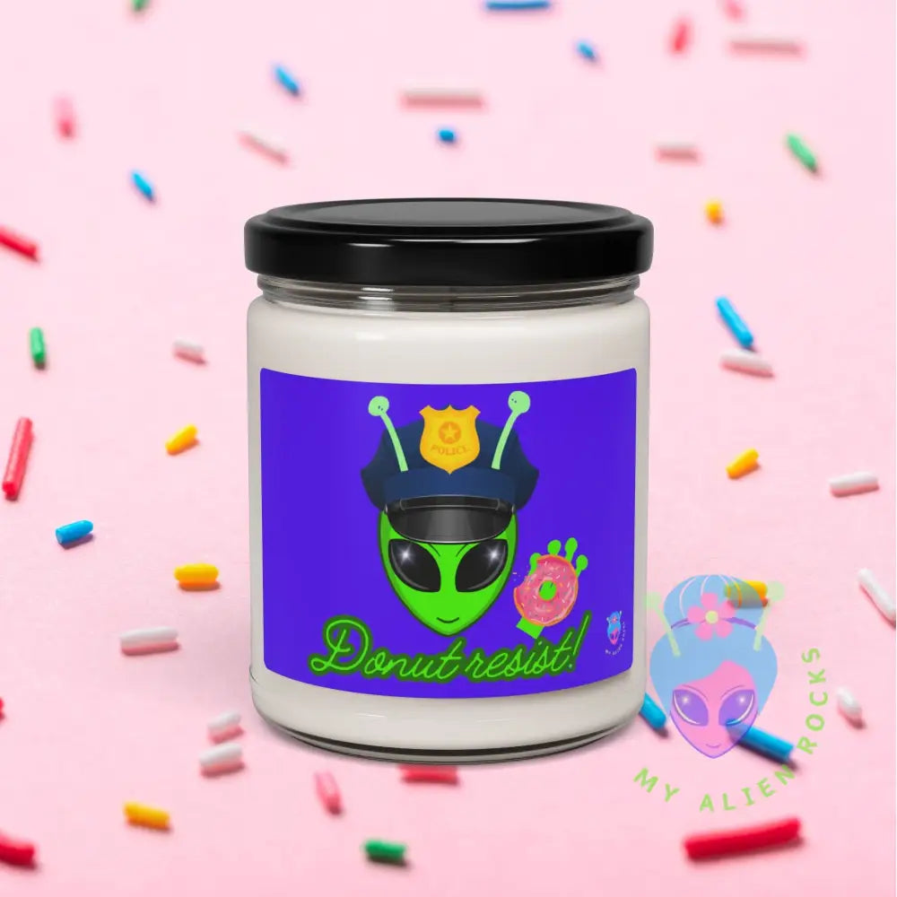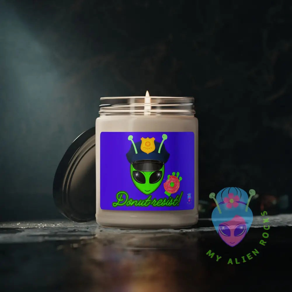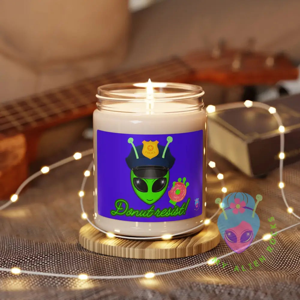 Police Alien - Donut Resist! - Electric Violet - 9 oz Scented Soy Candle (Clear Jar)