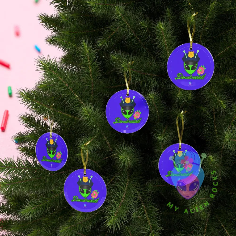 Police Alien - Donut Resist! - Electric Violet - Glass Ornaments