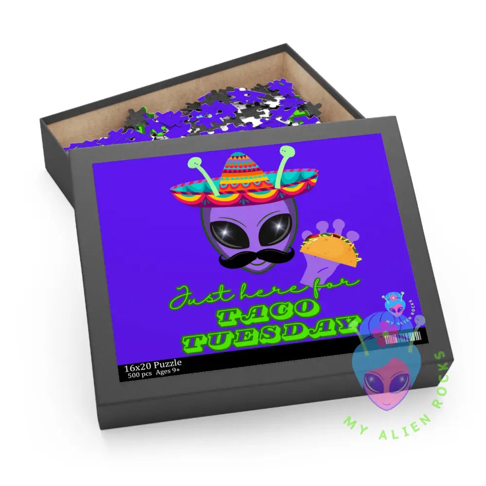 Taco Tuesday Alien - Just Here for Taco Tuesday - Electric Violet - 500-Piece Puzzle