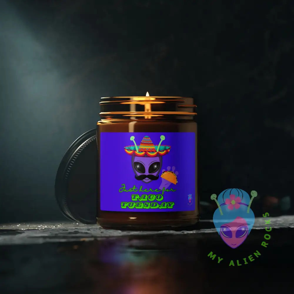 Taco Tuesday Alien - Just Here for Taco Tuesday - Electric Violet - 9 oz Scented Soy Candle (Amber Jar)