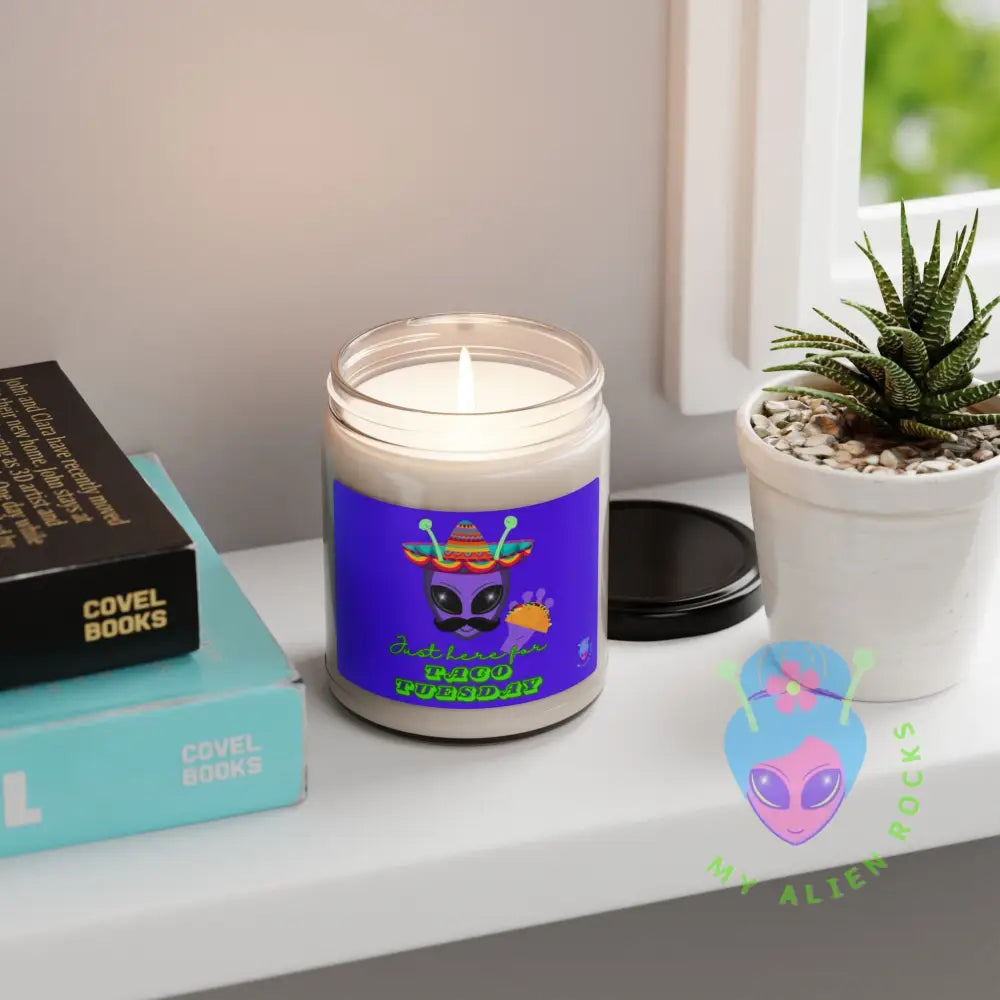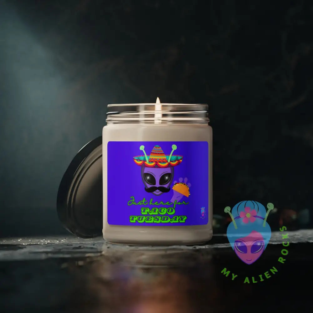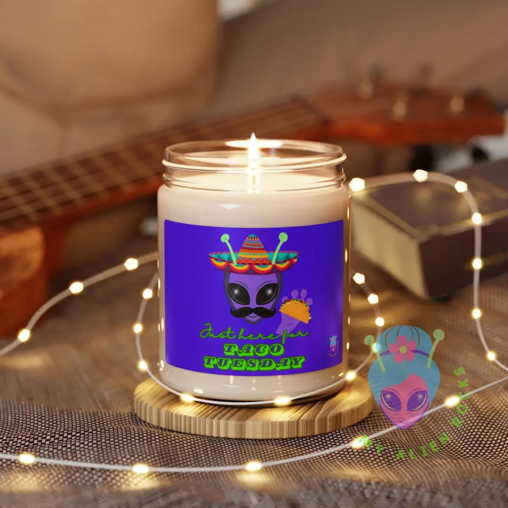 Taco Tuesday Alien - Just Here for Taco Tuesday - Electric Violet - 9 oz Scented Soy Candle (Clear Jar)