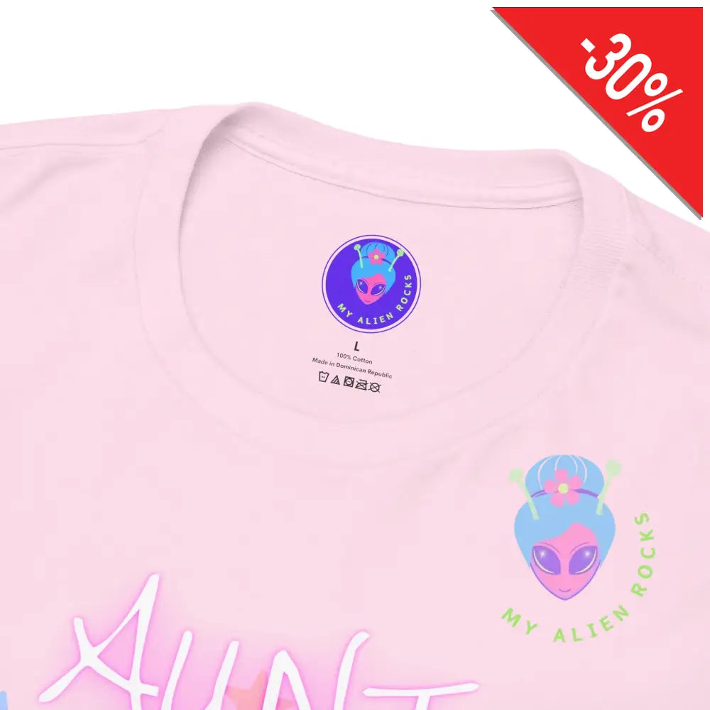 Are you the proud aunt of an out-of-this-world-stellar-far-out birthday princess? You are?! Yes, you are! And this epic "Aunt of the Birthday Princess" t-shirt is just for YOU, Auntie! (See, it even has your name on it)! Now, it's not galactic news that there is something extra-special about being the aunt of a birthday-alien-unicorn hybrid...but it is galactic news that you can now showcase that proud fact with your very own My Alien Rocks t-shirt, which features a rendering of our sparkly-stardustly-if-you're-going-to-be-a-unicorn-be-an-alien-unicorn...alien, Honey! (Meet Honey — and the rest of our rockin' family — on social media @myalienrocks)!