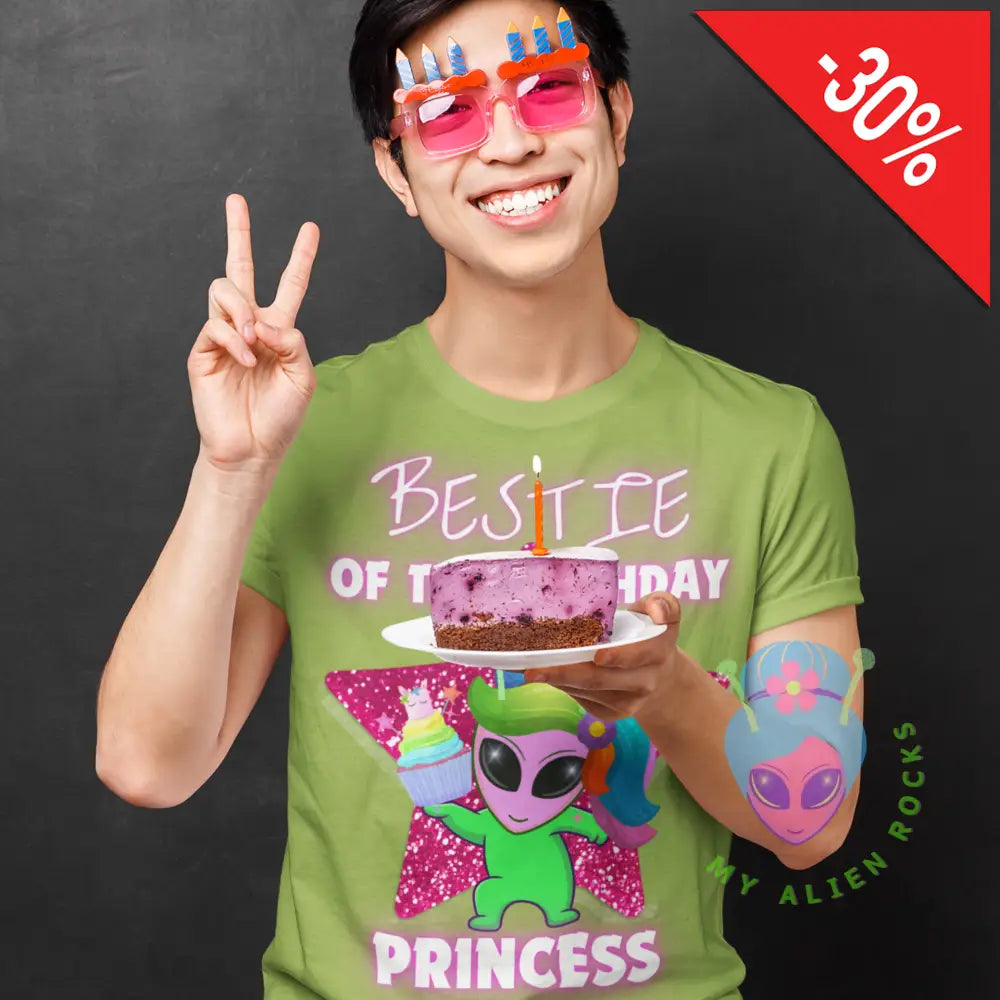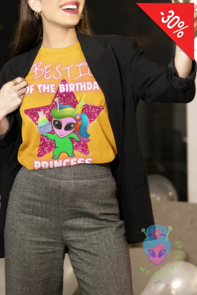 Unicorn Alien - Bestie of the Birthday Princess - Unisex Heavy Cotton Tee