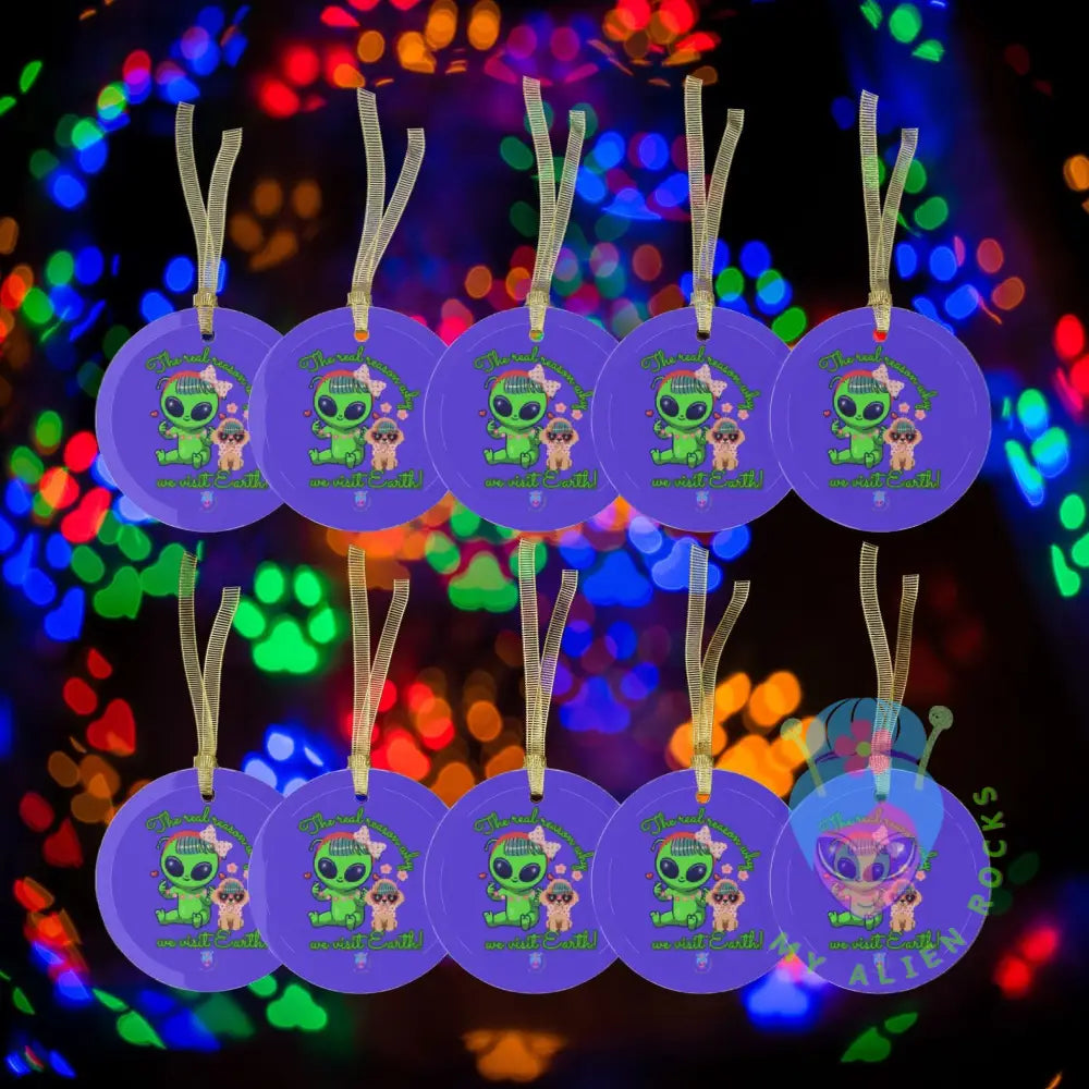 Why Aliens Visit Earth - Dogs - Electric Violet - Glass Ornaments