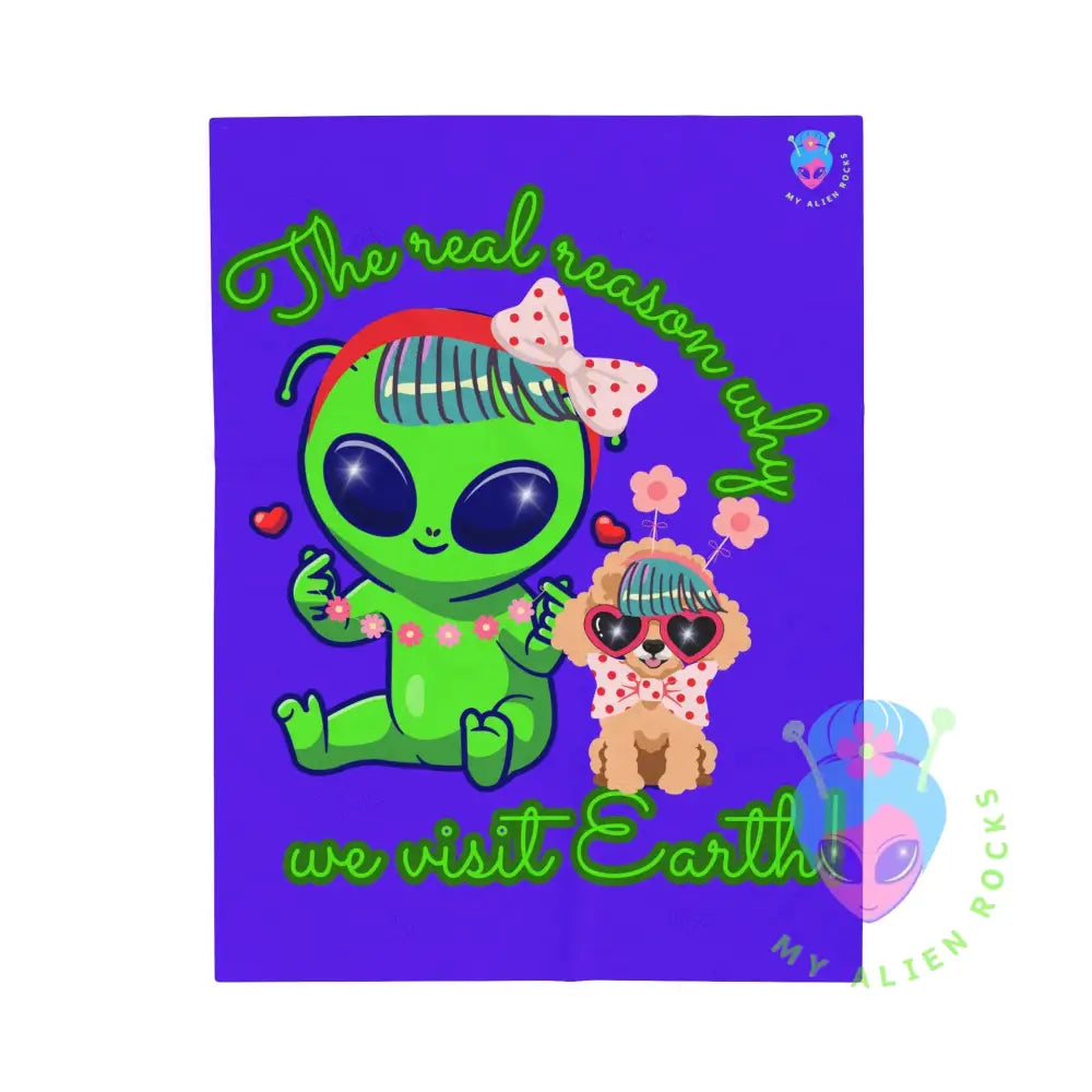 Why Aliens Visit Earth - Dogs - Electric Violet - Velveteen Plush Blanket