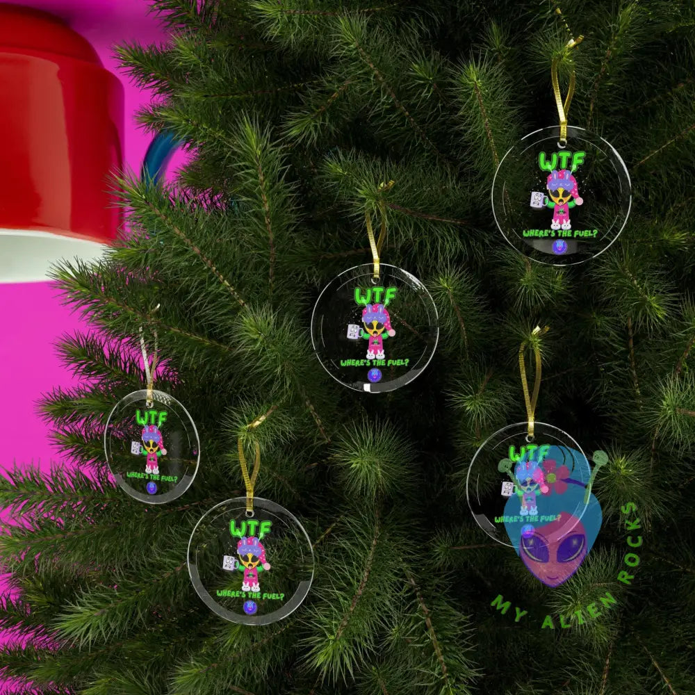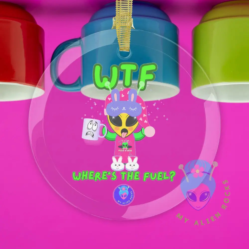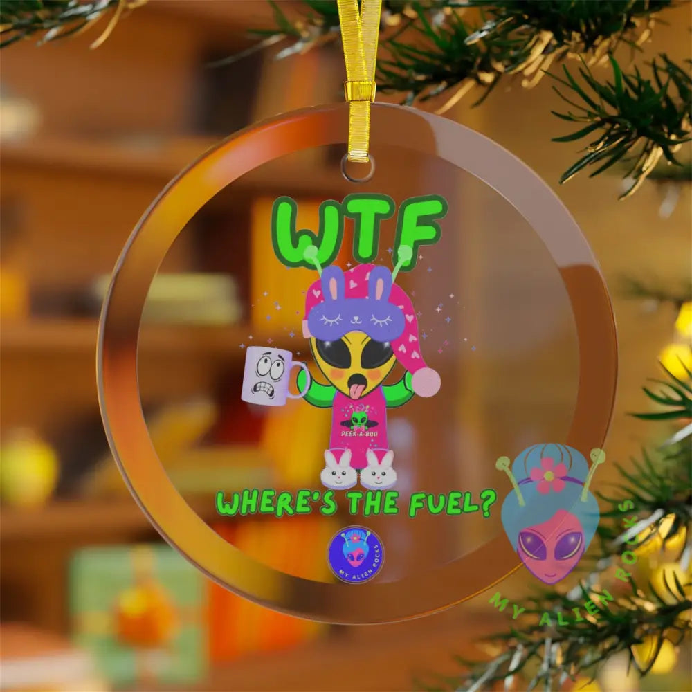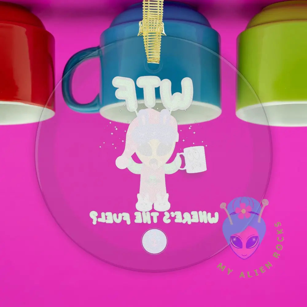 WTF Alien - Coffee Alien - Where's the Fuel? - Clear - Glass Ornaments