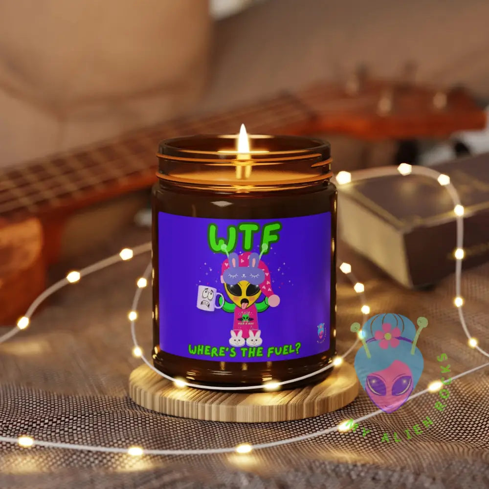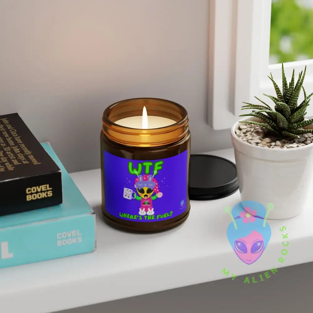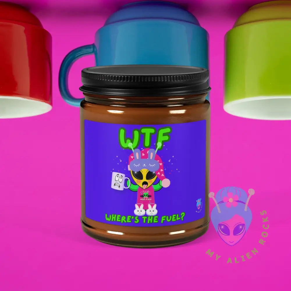 WTF Alien - Coffee Alien - Where's the Fuel? - Electric Violet - 9 oz Scented Soy Candle (Amber Jar)