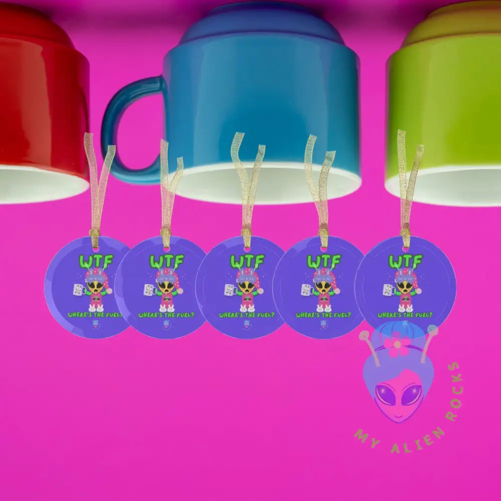 WTF Alien - Coffee Alien - Where's the Fuel? - Electric Violet - Glass Ornaments